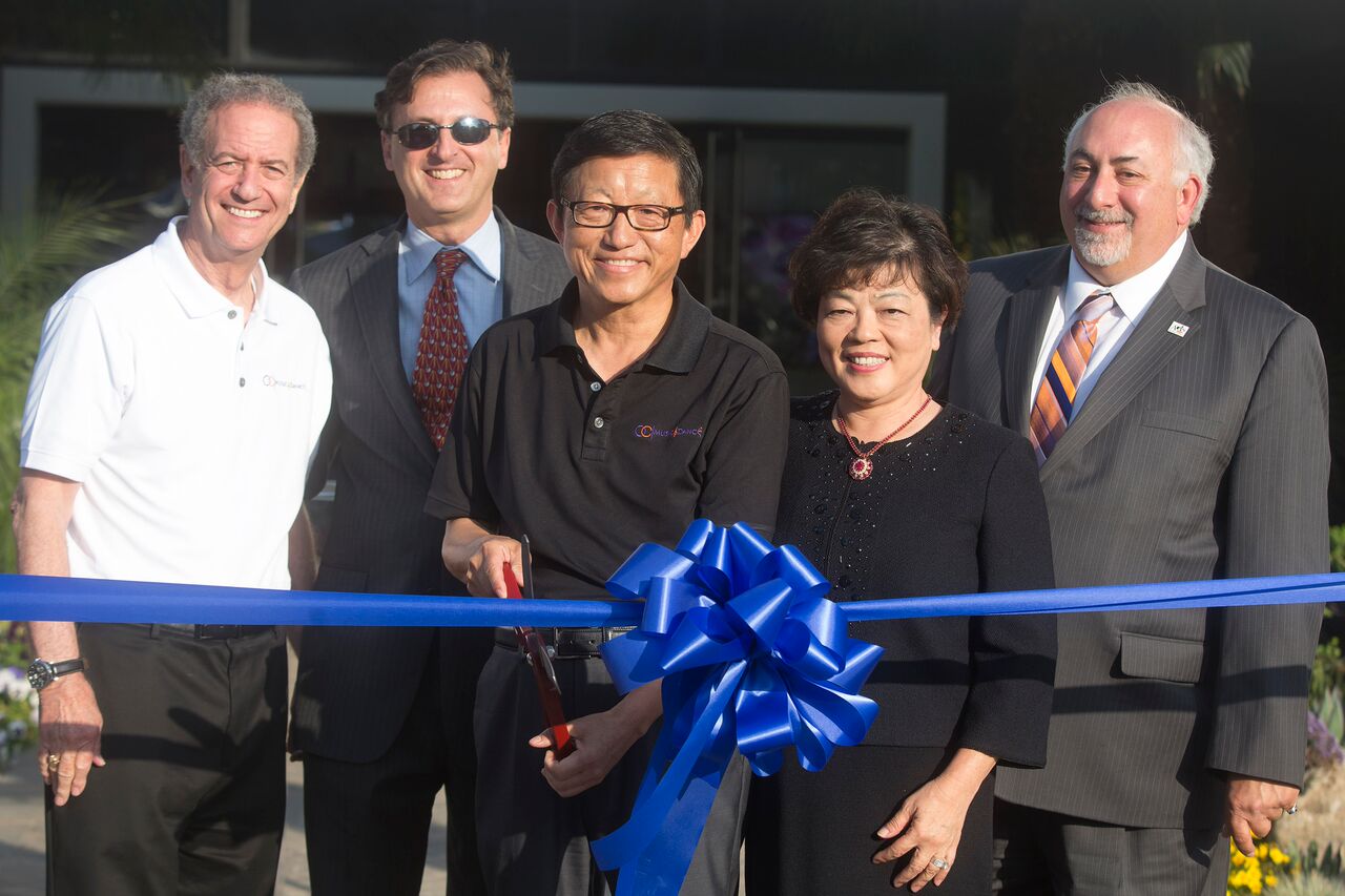 Trumpets played, flags were raised and a giant ribbon was cut to unveil the new Pacific Symphony administrative headquarters in the City of Irvine yesterday. Symphony President John Forsyte revealed the Board of Directors’ support in naming the building the Charlie and Ling Zhang Musical Arts & Education Center, to honor the man whose vision and generosity made the move possible.