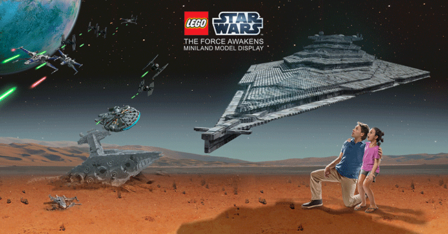 On March 9, for the first time, Park guests will be able to see epic scenes from the movie Star Wars™: The Force Awakens constructed out of LEGO bricks including a 16-foot-long Star Destroyer Finalizer made out of more than 350,000 LEGO elements, making it the longest Star Wars™ Miniland model ever created! The new display includes six LEGO scenes that represent the first 30 minutes of the blockbuster film which include: Kylo Ren’s capture of Poe at planet Jakku; Rey’s rescue of BB-8; Poe and Finn’s escape from the Star Destroyer Finalizer; The wreck of Finn and Poe’s TIE Fighter; Rey, Finn and BB-8’s escape from Niima Outpost; and the escape from the Starship Graveyard. Lights, sound effects and animation will further bring the scenes and characters to life from this epic motion picture. The new LEGO model display is LEGOLAND California Resort’s latest major addition in LEGO Star Wars™ Miniland which opened in 2011 and expanded with the addition of the LEGO Star Wars™ Miniland Gallery in 2012 and LEGO Star Wars™ Miniland Death Star in 2015. LEGO Star Wars™: The Force Awakens Miniland Model Display opens just in time for spring break and is included in the cost of admission to LEGOLAND California Resort.
