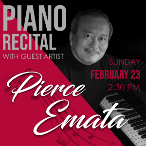 Pierce Kagari Emata received his Bachelor and Master’s degrees in Piano Performance at Indiana University’s Jacobs School of Music, coaching with notable concert artists. He appeared the renown Dame Myra Hess Memorial Concerts, broadcast across the United States from Chicago, and has concertized extensively throughout the U.S. Mr. Emata serves on the summer piano faculty at the Interlochen Center for the Arts, a summer school that brings students across the performing and visual arts from 50 countries, presenting master classes and private lessons.