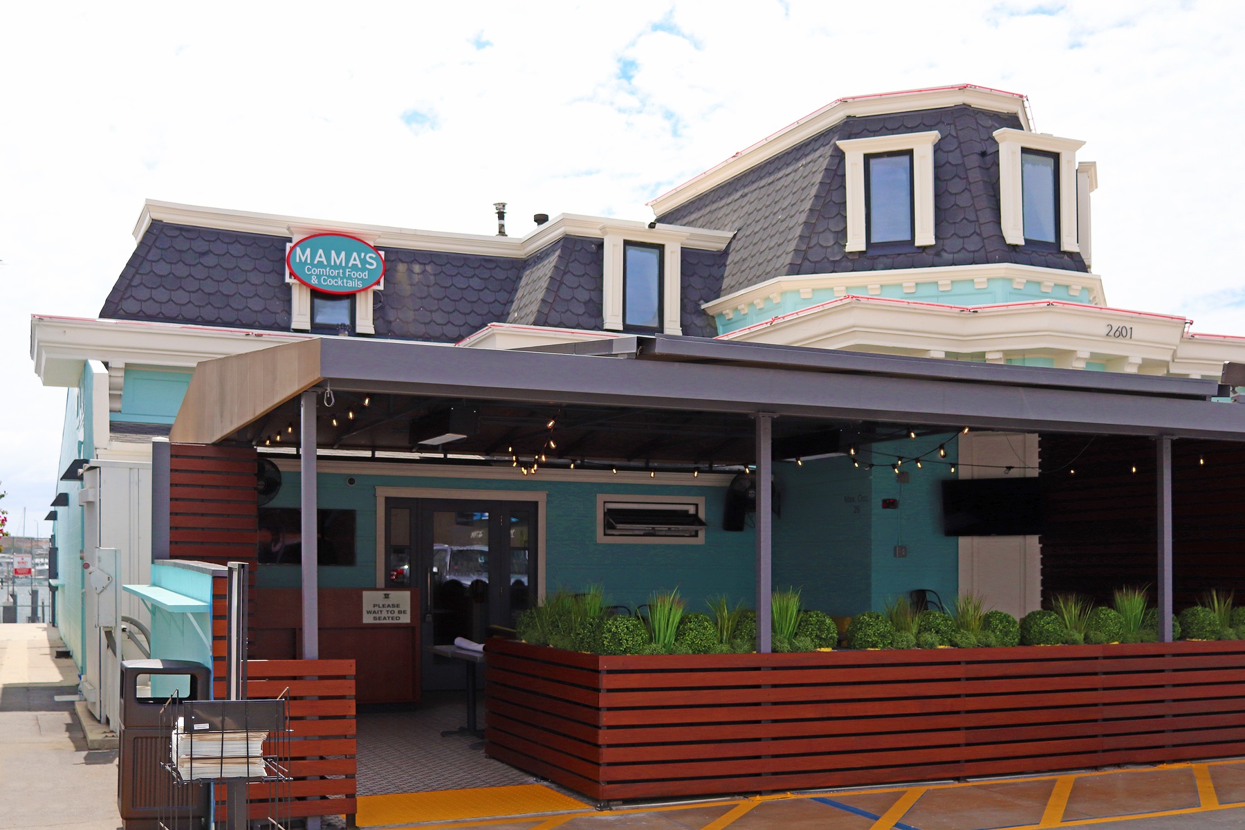 The restaurant’s interior decor features bright, beach-style colors, exposed brick walls and Mama’s iconic Photo Wall with hundreds of candid photos of local moms. A horseshoe-style bar with well-positioned TVs is a perfect setting for gazing out the expansive windows at the bay while catching up on live sporting events.