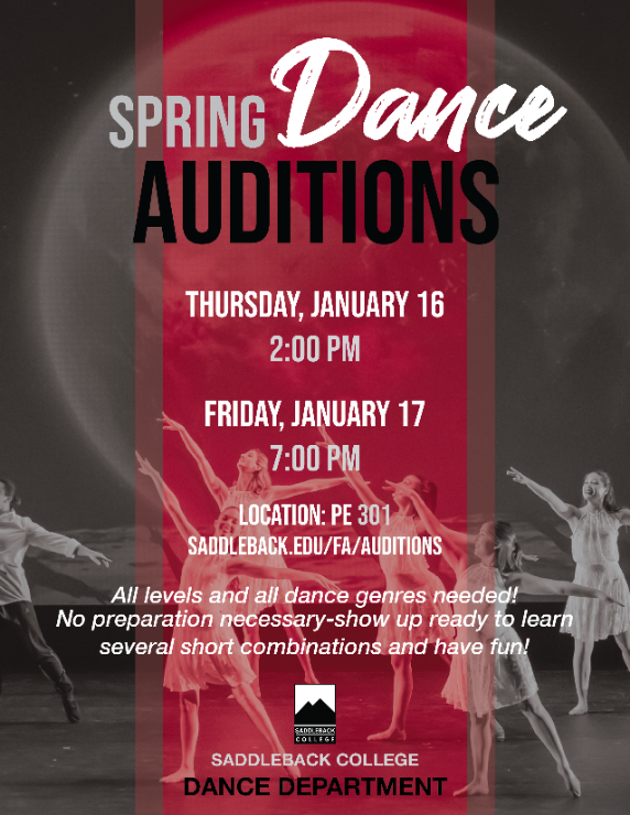 We will be casting for our spring main-stage production (tech/show dates April 13-18); all performers must enroll in a 1-2 unit production/rehearsal course. Rehearsals begin week two!