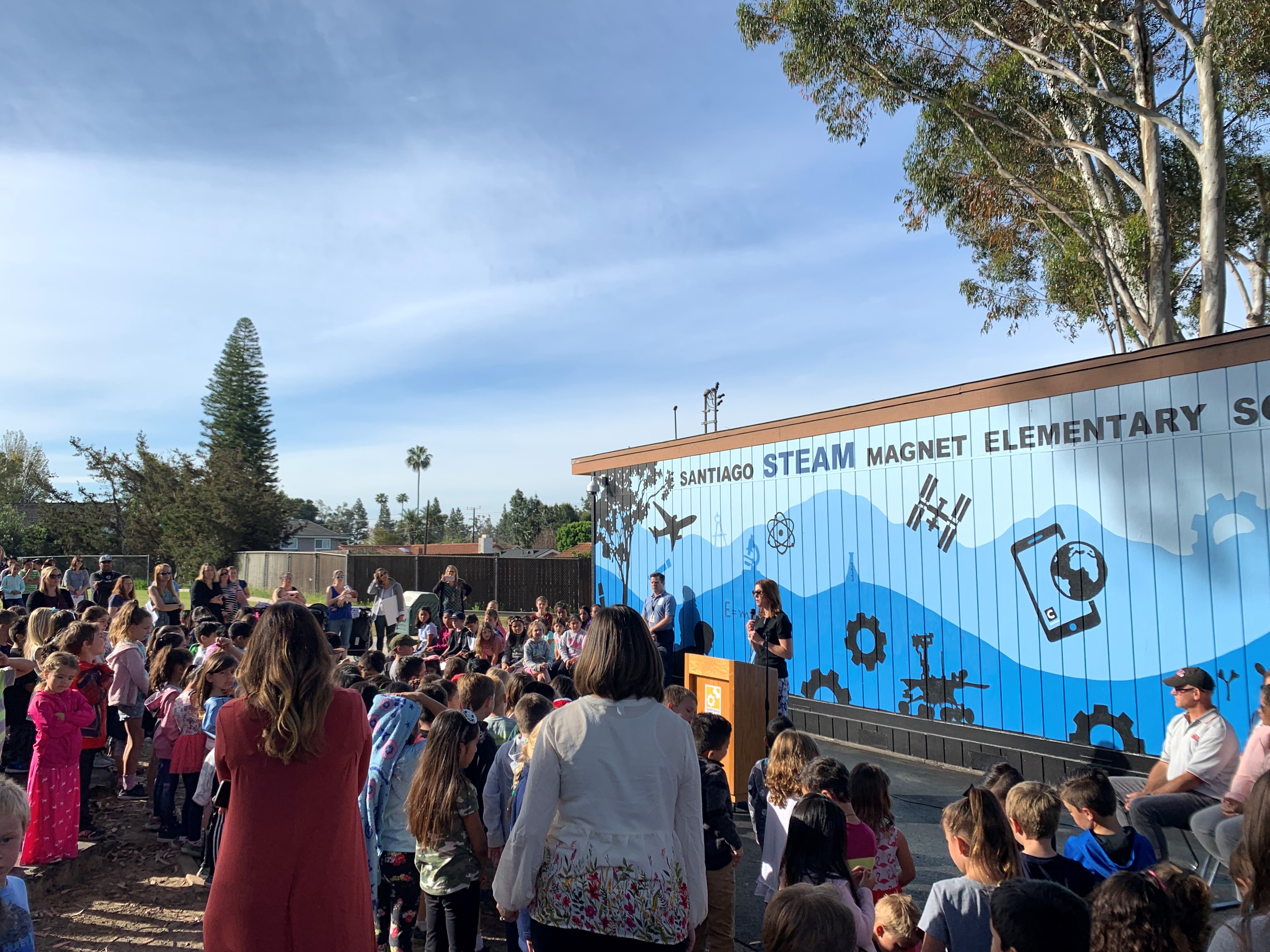 “We were very fortunate to become a STEAM Magnet school this year. I can’t think of a better way to cap off the year than to have the opportunity for our students to come together with members of the community and create a wonderful STEAM mural,” said Santiago Elementary principal Howard Johnston.