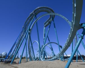 Emperor is a floorless dive coaster and will, in fact, be the tallest, fastest and longest dive coaster on the West Coast, as well as the only floorless dive coaster. Named for the world’s largest penguin, Emperor will mimic this species’ amazing underwater diving ability. Fun fact: emperors can dive to a depth of 1,800 feet. Riders on the Emperor coaster will climb to 153 feet,  where they will be suspended on a 45-degree angle at the crown of the ride before plunging down a 143-foot facedown vertical drop accelerating to more than 60 miles per hour.