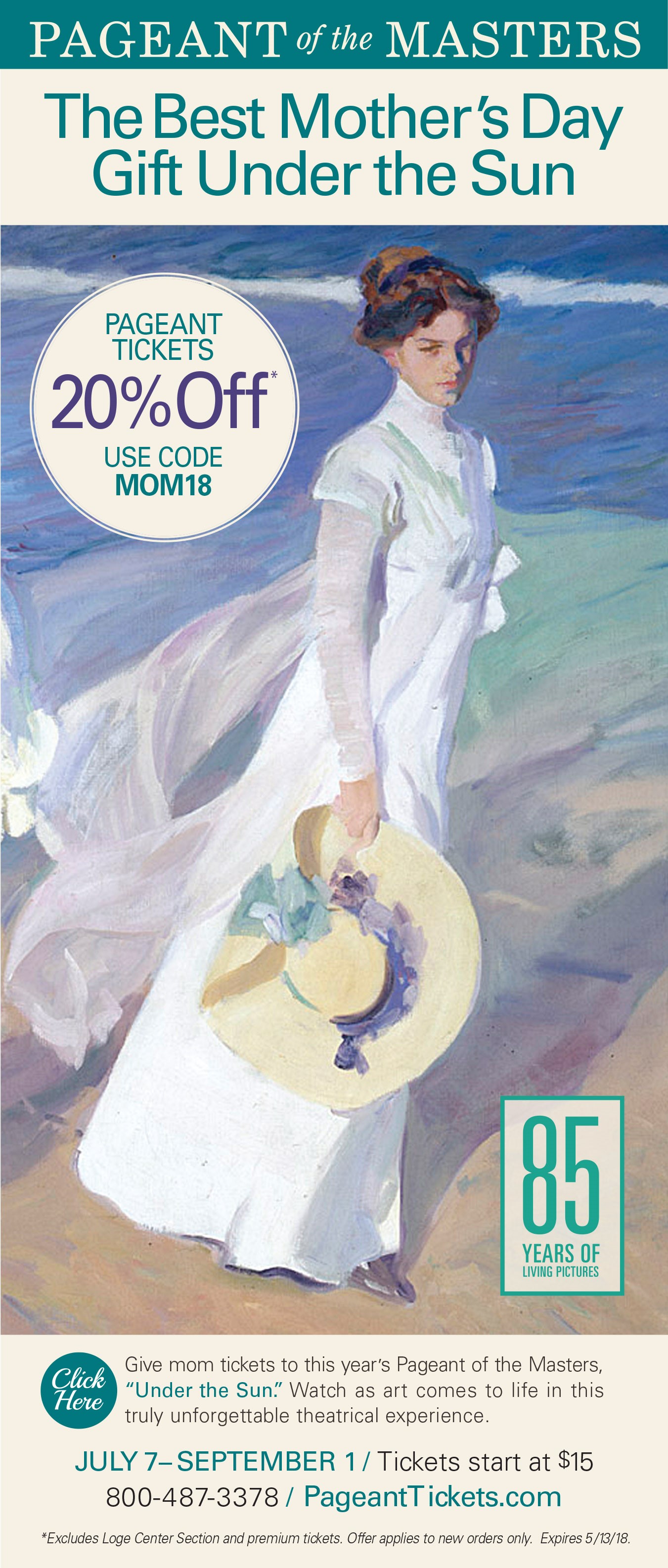 Tickets for the much-anticipated 2018 Pageant of the Masters are on sale now and make the perfect holiday gift for art lovers. Brighten up the holiday season with tickets to next summer’s production “Under the Sun.”