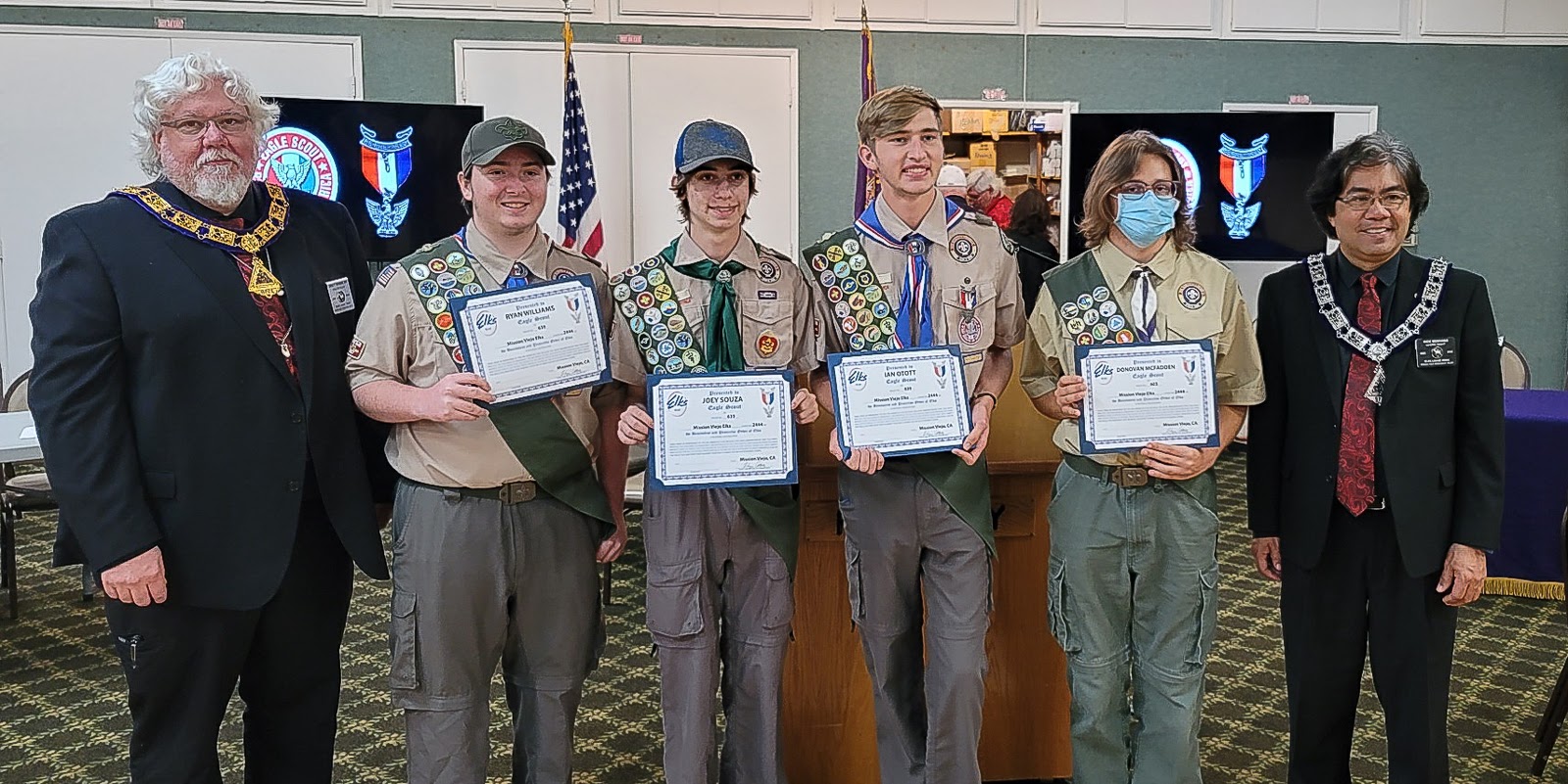 The Saddleback Mission Viejo Elks Lodge #2444 celebrated local youth with Youth Appreciation Night on May 11th.  The Elk’s recognized them for their accomplishments, contributions of service, and achievements over the past year.  Officers and members were joined by parents, Boy Scouts and Scout Leaders from Troop 603, Troop 2020, and Troop 639 in the celebration.